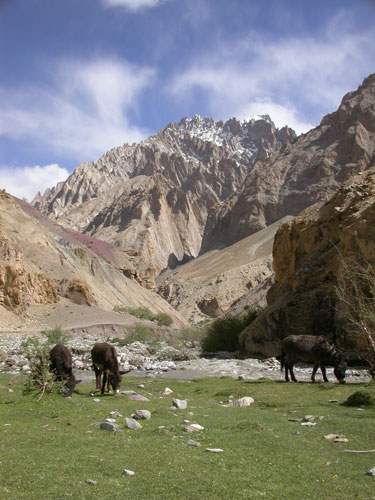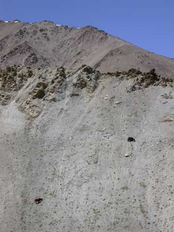 On the way up we saw a herd of Himalayan deer, and an amusing and amazing sight of cows negotiating apparently vertical slopes. Once up, the view from the Konze La was absolutely spectacular. We had views of the Ladakh range and the Karakoram and the Stok ranges.