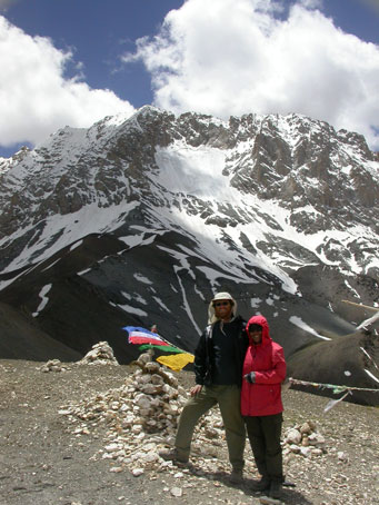On the morning of the third day we were faced with a long and steep climb along a zigzagging route up to the Konze La (4950m). There was some time pressure, as we were concerned about crossing the streams on the other side of the pass, which rise during the course of each day. Thanks partly to the high altitude, and partly just to being out of shape, we were gasping for breath, until finally Minette begged for some distracting conversation. David obliged with an impromptu lecture on the abstract mathematical subject of Category Theory; with our minds thus elevated to lofty heights, we soon forgot our earthly weight.