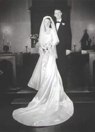 Wedding portrait at St. Chrysostomi Church, Wollarton (9 Oct 1949)