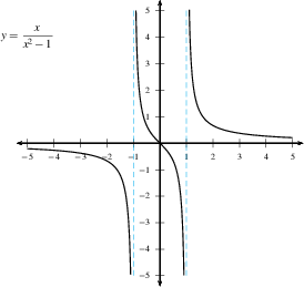 Rational functions often have vertical asymptotes when the denominator goes to zero (and the numerator doesn't), such as $f(x) =\dfrac{3}{x-4}$ or $f(x)=\dfrac{x^2-1}{x^2-4}$.