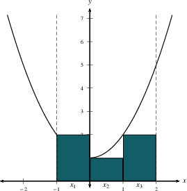 $x_{i-1}$, the right endpoint $x_i$, the midpoint