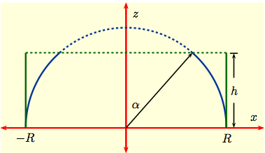 $$ z \ = \ \sqrt{R^2 - x^2}\,, \quad |x| \le R\,,$$