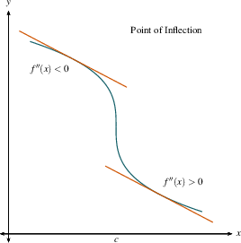 An inflection point is a point where concavity changes sign from plus to minus or from minus to plus.