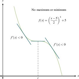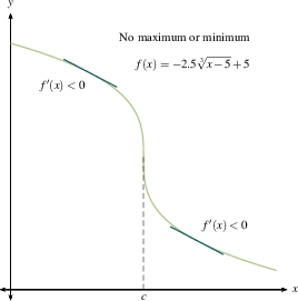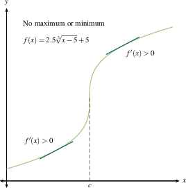 This should jibe with your common sense. A local maximum is where you stop going up and start coming down. A local minimum is where you stop going down and start coming up. If you flatten out and then resume going in the direction you were already heading, you're at a critical point but not at a maximum or minimum. Once you make a sign chart for $f'(x)$, as we outlined previously, then you know where all the local maxima and minima are.