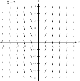 Since $\displaystyle\frac{dy}{dx} = f(x,y)$, at each point $\left(x_0,y_0\right)$ in the $xy$-plane we can draw a short line with slope $f\left(x_0,y_0\right)$. This is called a direction field. A solution to the differential equation $\displaystyle\frac{dy}{dx} = f(x,y)$ is then a curve that is everywhere tangent to the direction field.