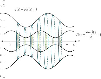| $$\pi \int_a^b \big(f(x)^2 -g(x)^2\big)\,dx.$$ |