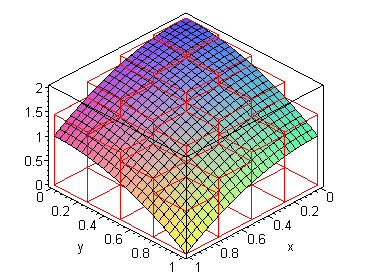 In this example, you can see both the rectangles $R_{ij}$ on the $xy$-plane, and above them the approximating columns, and the surface under which the volume is to be approximated. www.stetson.edu