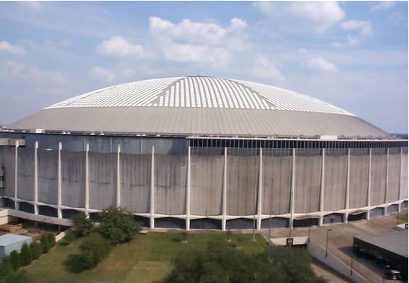 Example 1: Let's illustrate this change of variable idea in the case of polar coordinates. The Astrodome in Houston as shown to the right below might be modelled mathematically as the region below the cap of a sphere