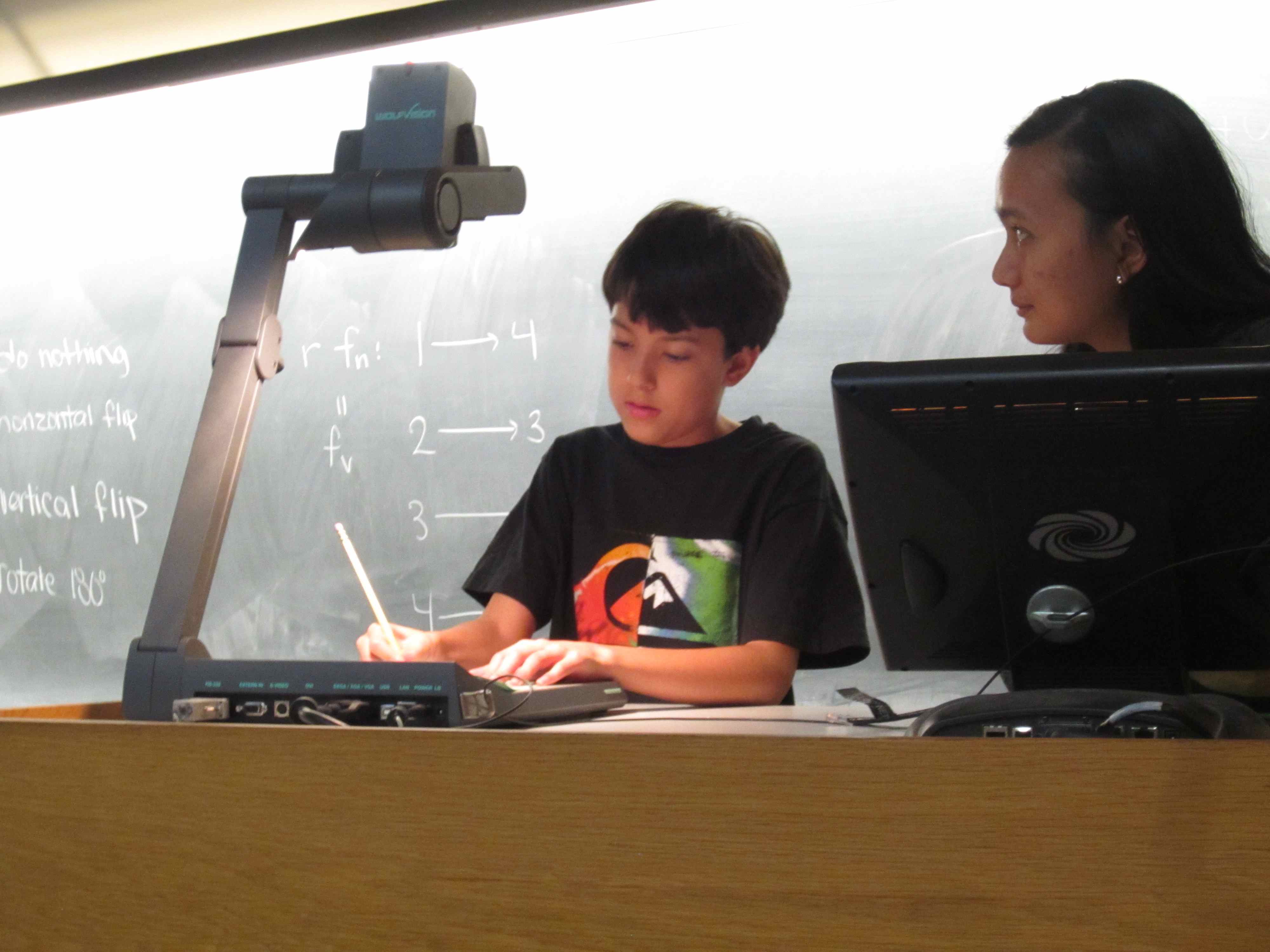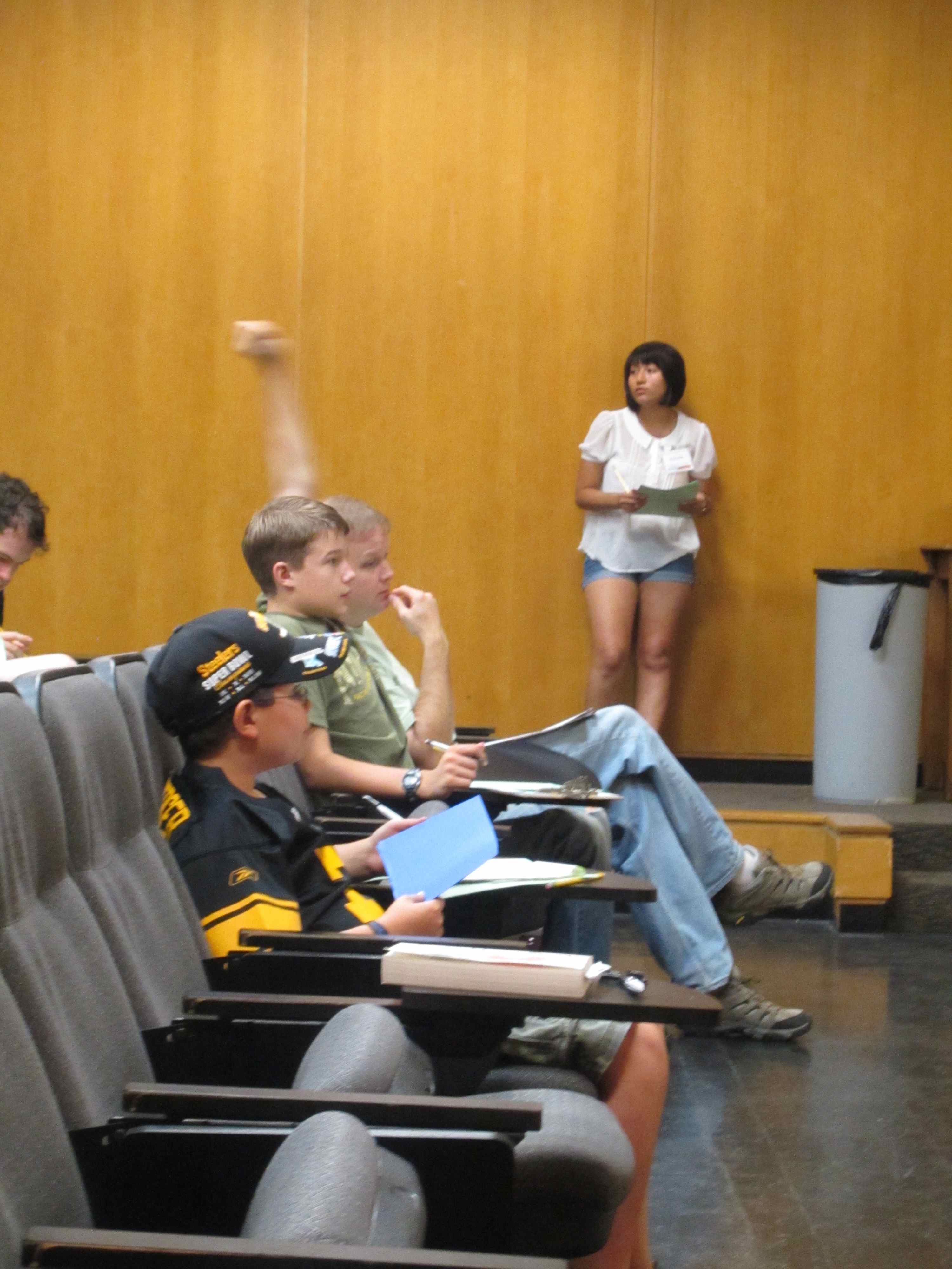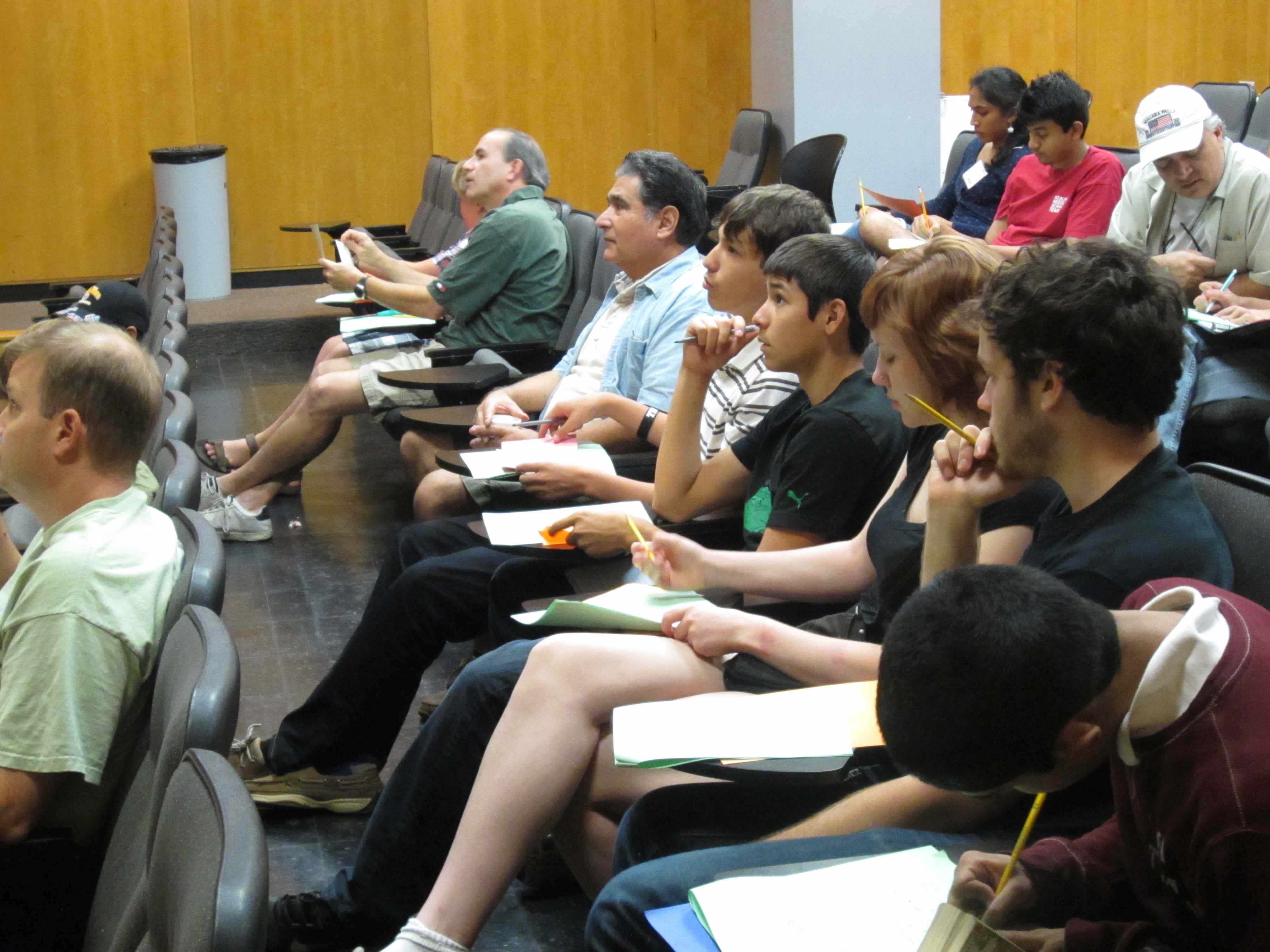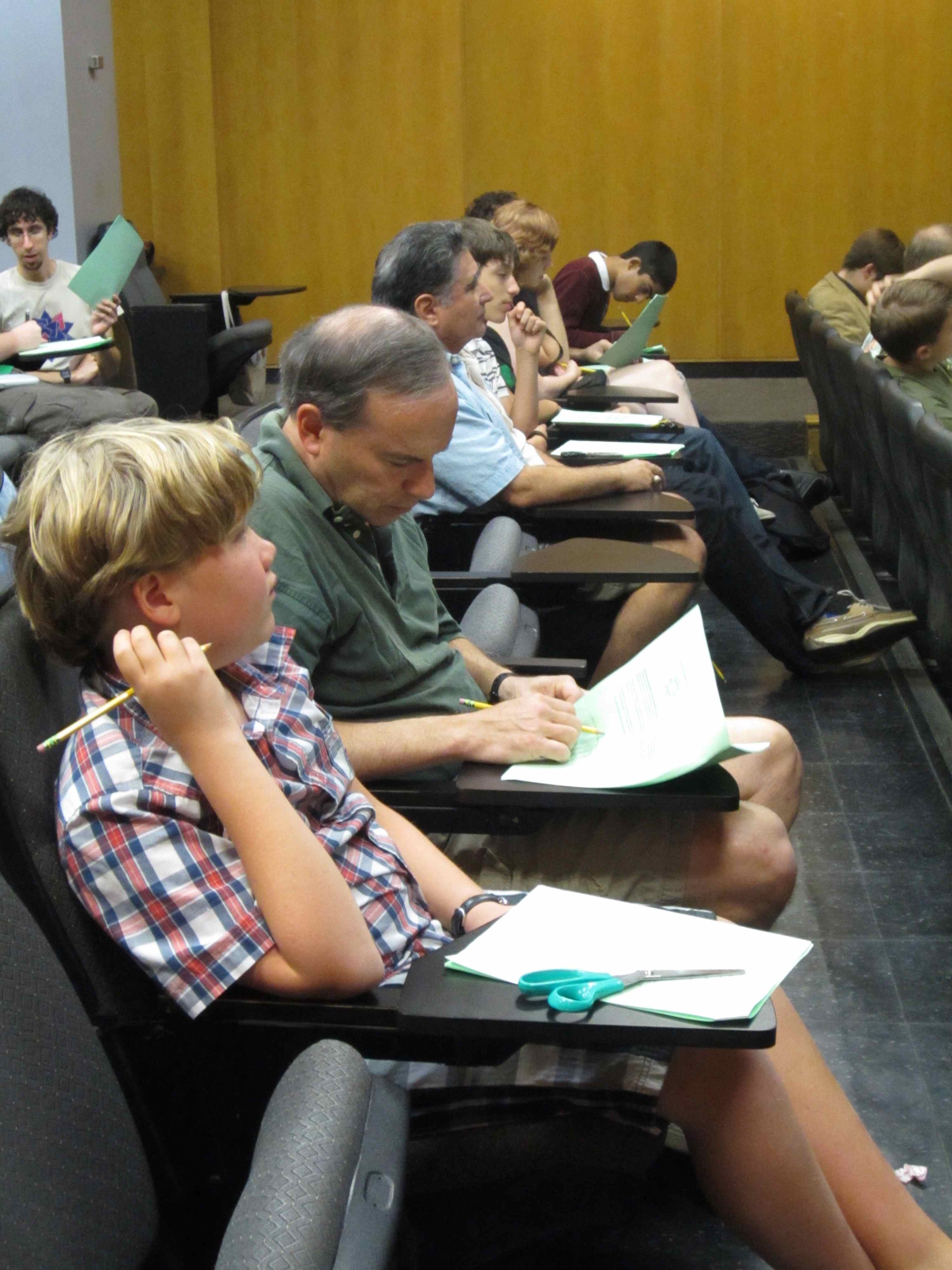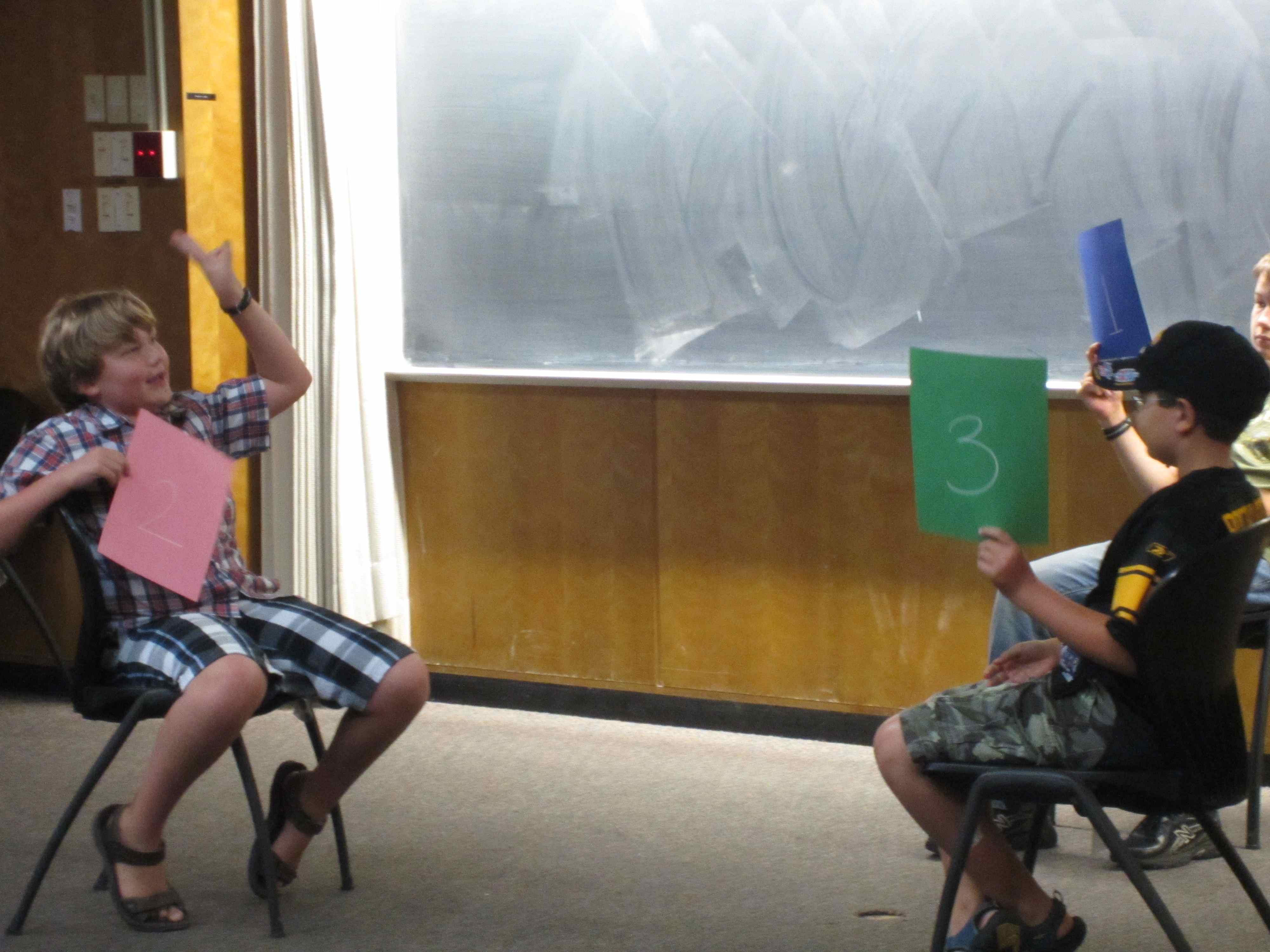 On Sunday November, 4 2012, Michelle Chu led a discussion about rotations, symmetries, and group theory to an audience of about 40 students and parents. We used basic properties of groups and reflectional and rotational symmetries to complete the Cayley tables for the rectangle and the triangle.